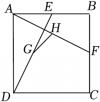 如图,在正方形ABCD中,AB=4,E,F分别为边AB,BC的中点,连接AF,DE,点G,H分别为DE,AF的中点,连接GH,则GH的长为( )