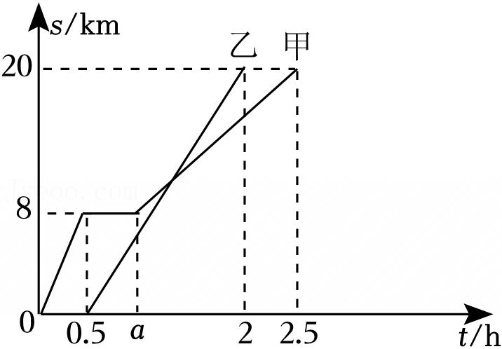 B.甲中途停止了0.5h