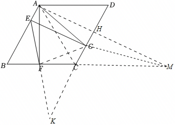 解:分别延长EFDC,设它们交于点K,取DC的中点H,延长AHBC延长线于点M,连接FGGM,如图,