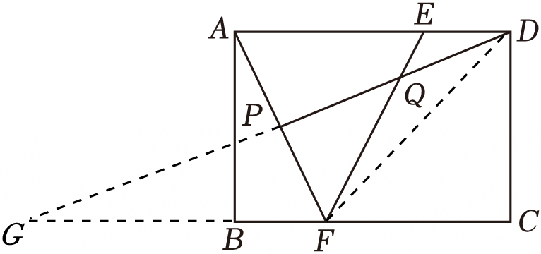 230650. (2025•西工大附中•七模) 如图,在矩形ABCD中,点E、F分别在边AD、BC上,线段EF平分矩形面积,连接AF,P为AF中点,连接DP,交EF于点Q,若DE=2,CD=4,FQ=3EQ,则△PQF的面积为