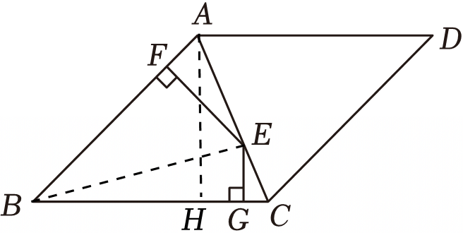 230652. (2025•铁一中学•六模) 如图,菱形ABCD中,∠B=45°,点E为对角线AC上一点,作EF⊥AB于点F,作EG⊥BC于点G,若EG+EF=4,菱形ABCD的面积为