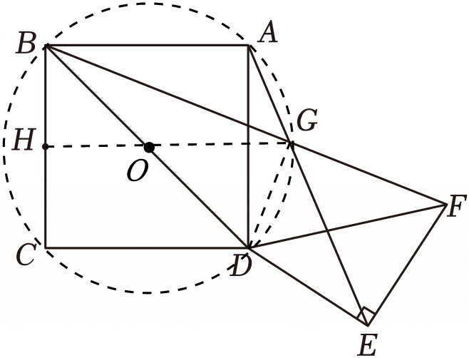 230660. (2025•铁一中学•四模) 如图,已知正方形ABCD的边长是4,点H是BC边的中点,△DEF是等腰直角三角形,∠DEF=90°.连接AE和BF,交于点G.若△DEF绕着点D在平面内自由旋转,HG的最大值是
