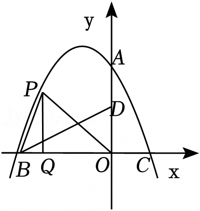 244329. (2023•曲江一中•九上期末) .如图,在平面直角坐标系中,二次函数y=﹣+bx+c的图象与y轴交于点A(0,8),与x轴交于BC两点,其中点B的坐标是(﹣8,0),点Pmn)为该二次函数在第二象限内图象上的动点,点D为(0,4),连接BD