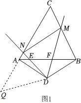(1)解:如图1,延长CA,在射线CA上截取AQBM,连接DQ