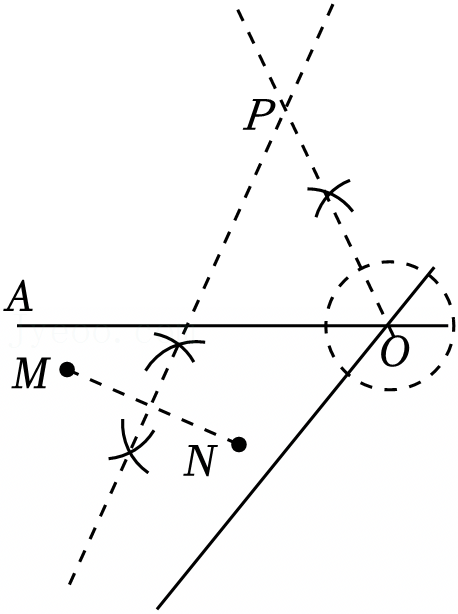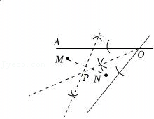 如图:某地有两所大学和两条相交叉的公路(点M,N表示大学,AO,BO表示公路),现计划修建一座物资仓库,希望仓库到两所大学的距离相等,到两条公路的距离也相等,请你确定仓库P修建的位置.
