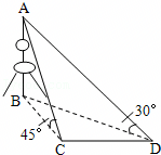 如图,要测量底部不能到达的某铁塔AB的高度,在塔的同一侧选择C、D两观测点,且在C、D两点测得塔顶的仰角分别为45°、30°.在水平面上测得∠BCD=120°,C、D两地相距600m,则铁塔AB的高度是( )