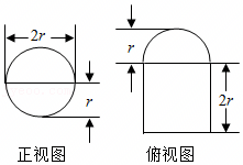 圆柱被一个平面截去一部分后与半球(半径为r)组成一个几何体,该几何体三视图中的正视图和俯视图如图所示.若该几何体的表面积为16+20π,则r=( )