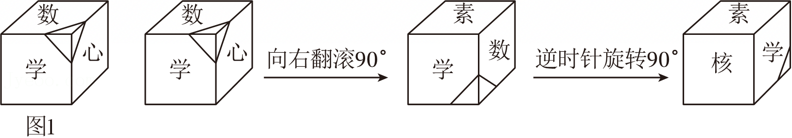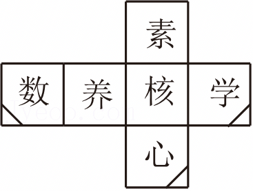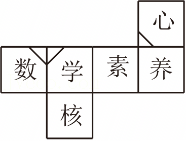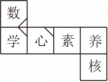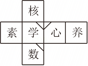 将“数学核心素养”六个字分别写在如图所示的正方体盒子的六个面上,将图1盒子在桌面上向右翻滚90°,接着按逆时针方向旋转90°.若把该正方体盒子打开( )