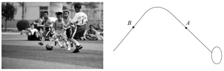D.A、B两点等高,足球在A点时的动能大于在B点时的动能