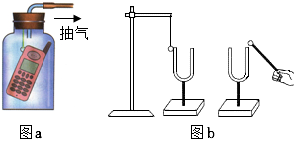 小明在探究声音传播条件的实验中,将正在发声的手机悬挂在密封的广口瓶内,用抽气筒将广口瓶中的空气抽出,如图a所示。| 编号 | 琴弦的材料 | 琴弦的长度/cm | 琴弦的横截面积/mm2 |