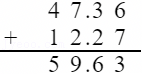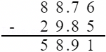 136.9×0.01= | 6.42-2.4= | 7.5-1.2-0.8= | 100×0.01×10= |
