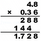 136.9×0.01= | 6.42-2.4= | 7.5-1.2-0.8= | 100×0.01×10= |