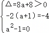 B=∅时,Δ=4(a+1)2﹣4(a2﹣1)=8a+8<0,解得a<﹣1,