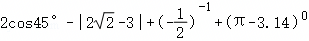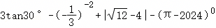 173594. (2024•铁一中学•九上二月) 计算:2cos30°﹣|﹣2|+(π﹣3.14)0﹣(﹣﹣1
