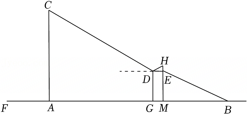 小延想要测量学校教学楼AB的高度,他站在N点处时,视线通过旗杆DE的顶端与顶楼的窗子下沿C重合,他向前走到点G处时,视线通过旗杆DE的顶端与楼顶A重合,已知小延的眼睛与地面的距离MN=FG=1.6米,NG=2米,GE=6米,BE=8米,AC=3米,MN、FG、DE、AB均与地面垂直,且在同一平面内,请你根据以上数据计算教学楼AB的高度.