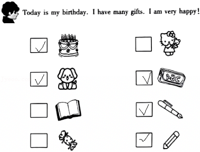 Hello!I'm Mike.I'm 9 years old.I like 9.It's my lucky(幸运)number.Today is my birthday.![]() |