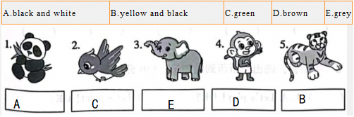 A.black and white | B.yellow and black | C.green | D.brown | E.grey |