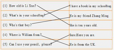 (1)How old is Li Xue? | I have a book in my schoolbag. |