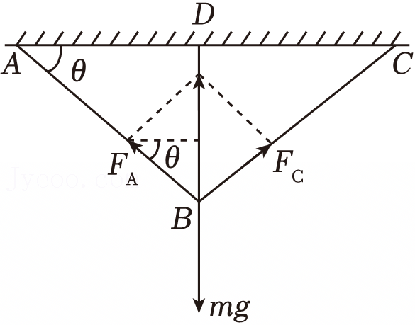 如图所示,质量均为m的小球A、B用劲度系数为k1的轻弹簧相连,B球用长为L的细绳悬于O点,A球固定在O点正下方L处,当小球B平衡时,绳子所受的拉力为FT1,弹簧的弹力为F1;现把A、B间的弹簧换成原长相同但劲度系数为k2(k2>k1)的另一轻弹簧,在其他条件不变的情况下仍使系统平衡,此时绳子所受的拉力为FT2,弹簧的弹力为F2。下列关于FT1与FT2、F1与F2大小之间的关系,正确的是( )