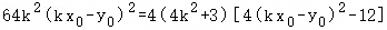 由Δ=0=64k2(2﹣k2=4(4k2+3)[4(2﹣k2﹣12],