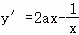 231069. (2016•西安一中•一模) 若曲线yax2lnx在点(1,a)处的切线平行于x轴,则a