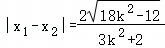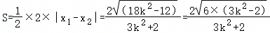 由Δ>0,即144k2﹣24(3k2+2)>0,可得3k2﹣2>0,