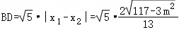 联立方程得13x2+12mx+3m2﹣9=0,Δ=144m2﹣13×4(3m2﹣9)>0,解得m2<39,