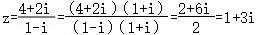 解:由z﹣2izi+4,得(1﹣iz=4+2i