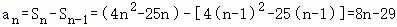 n=1时,a1=﹣21=8×1﹣29也符合8n﹣29的形式,