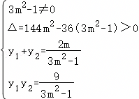 联立方程,得(3m2﹣1)y2﹣12my+9=0,