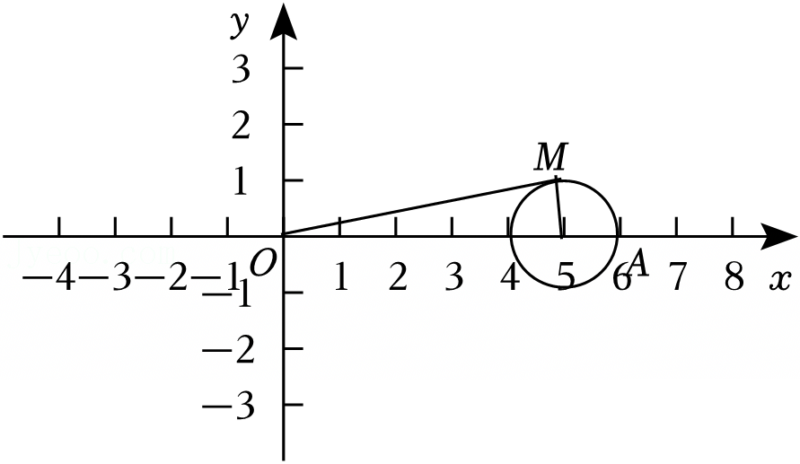 如图,当OM与(x﹣5)2+y2=1相切时,tan∠MOA取最大值,
