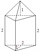 解:由题意可知几何体的直观图如图,下部是直三棱柱,底面是斜边长为2的等腰直角三角形,棱锥的高为2,上部是一个三棱锥,一个侧面与底面等腰直角三角形垂直,棱锥的高为1,