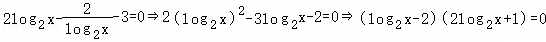 (2)由2log2x﹣2logx2﹣3=0得x>0且x≠1,