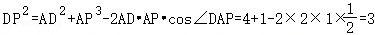 所以AD2=4=AP2+DP2,可知△ADP为直角三角形,DPAB
