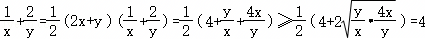 当且仅当,即y=2x=1时等号成立,故 的最小值为4.