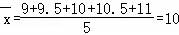 x | 9 | 9.5 | 10 | 10.5 | 11 |