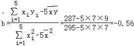 销售单价xi | 9 | 9.5 | 10 | 10.5 | 11 | 8 |