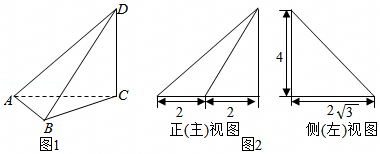 231390. (2016•西工大附中•七模) 三棱锥DABC及其三视图中的正(主)视图和侧(左)视图如图所示,则棱DB的长为