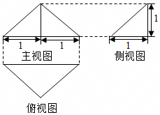 解:由题意可知几何体是四棱锥,底面是正方形,边长为1,一条侧棱垂直底面正方形的顶点,高为1,
