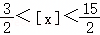 解:由4[x]2﹣36[x]+45<0化为(2[x]﹣3)(2[x]﹣15)<0,