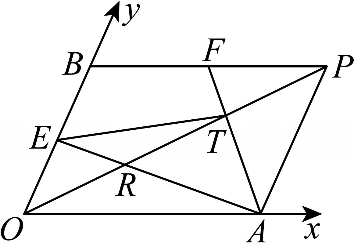 236997. (2025•高新一中•高一下期中) OxOy是平面内相交成θ角的两条不共线射线,则称该平面坐标系为斜坐标系θ﹣Oxy.向量分别是与x轴和y轴正方向同向的单位向量,若向量,则把有序实数对(xy)叫做向量在斜坐标系θ﹣Oxy中的坐标,记作.在如图所示的斜坐标系θ﹣Oxy中,若分别是OBBP的中点,AEAF分别与OP交于RT两点.