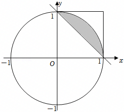 两个数能与1构成锐角三角形三边的数对(xy),满足x2+y2>1且足x+y>1,面积为1﹣