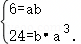 解:(1)把A(1,6),B(3,24)代入fx)=bax,得