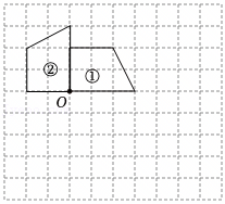(1)图①绕点O按        时针方向旋转90°,再向右平移        格得到图②。