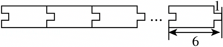 中国古代有很多极为精巧的发明,榫卯结构就是其一,它是在两个木构件上所采用的一种凹凸结合的连接方式.如图,已知一个木构件的长度为6,其凸出部分的长为1,若x个相同的木构件紧密拼成一列时,其总长度为y,则y关于x的关系式可以表示为 .