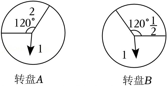 2023年5月30日9时31分,神舟十六号载人飞船发射取得圆满成功,北京航空航天大学桂海潮教授成为我国首位载荷专家,从贫困县的普通学生到太空科研第一人,他的事迹激励着每一位立志报国的中学生,我校即将开展“桂海潮事迹宣讲活动”,实力相当的甲、乙两位同学决定通过转盘游戏确定谁成为首位宣讲员,规则如下:如图是两个可以自由转动的转盘A,B,A转盘中数字1所对扇形区域的圆心角为90°,B转盘被分成面积相等的三个扇形,依次转动转盘A,B,当转盘停止后,若指针指向的两个区域的数字之和大于5,则甲获胜;否则乙获胜;如果落在分割线上,则需要重新转动转盘.