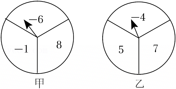 如图,甲、乙两个转盘分别被分成了3等份与4等份,每份上均标有数字,并且均可以自由转动.当转动转盘,转盘停止后,可获得指针所指区域的数字,我们称之为一次“转动”:若转动转盘,转盘停止后,指针指向两区域的边界,则需要重新转动转盘,直到完成一次“转动”:亦世凡华